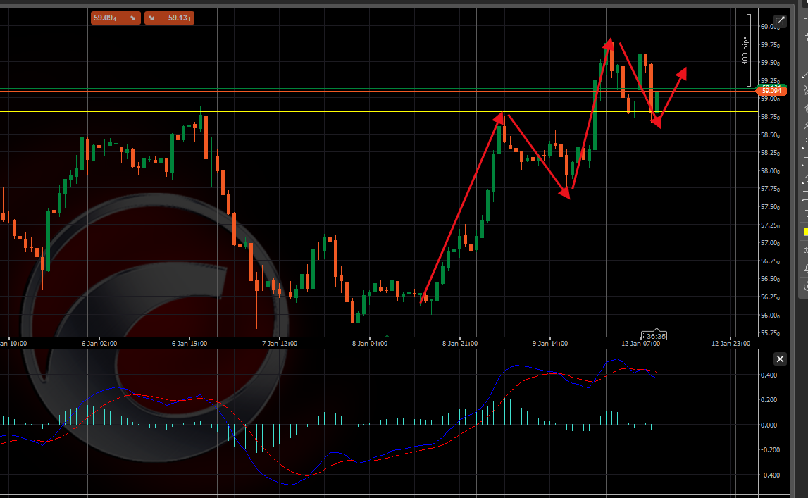 所以今天的关键位置就看 58.8,这里算是多空分水岭:⬆️ 站稳的话,往上可看向60附近;⬇️ 如果跌破,下方58.2一带可能会成为下一个测试点。