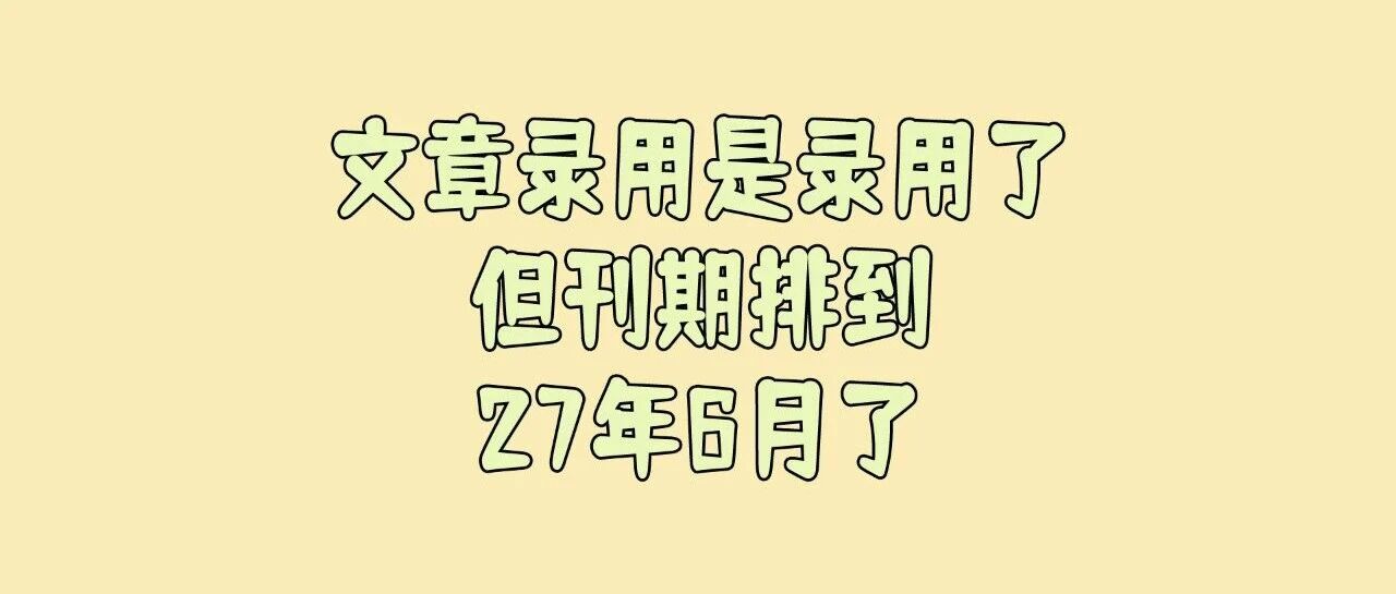 这段时间有位作者跟我吐槽,说自己遇到了一件特别糟心的事。文章录用是录用了,但刊期直接给他排到了——27 年 6 月。他当时整个人都懵了:我是 25 年底投的,录用通知刚下来,就给我排一年半以后?等我发出来,都快忘了自己写过啥了。