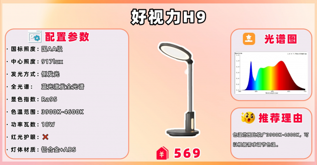 代表型号:好视力H9护眼台灯