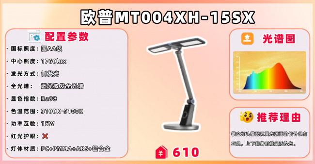 代表型号:欧普MT004XH-15SX护眼台灯