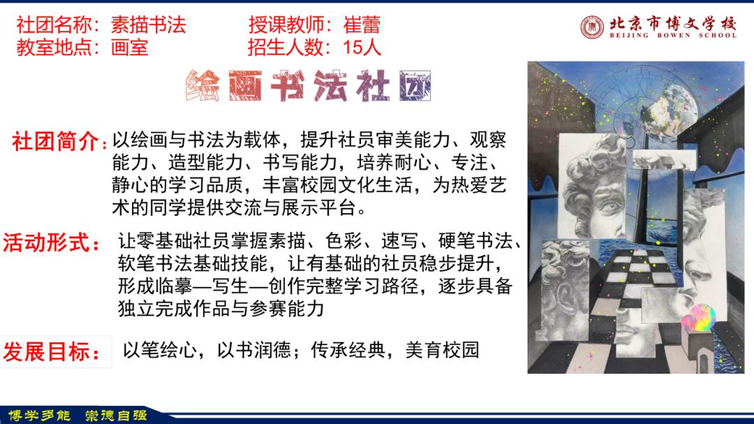 本次社团 / 选修课招新活动,是我校落实五育并举、服务区域高质量教育发展的务实行动,充分体现了学校构建有博文特色的课程体系的教育理念。