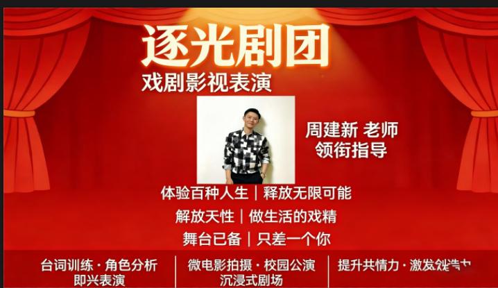 表演艺术方面,打造话剧社、逐光剧团、声浪播音社等平台,培养表达表现能力、展现青春风采;