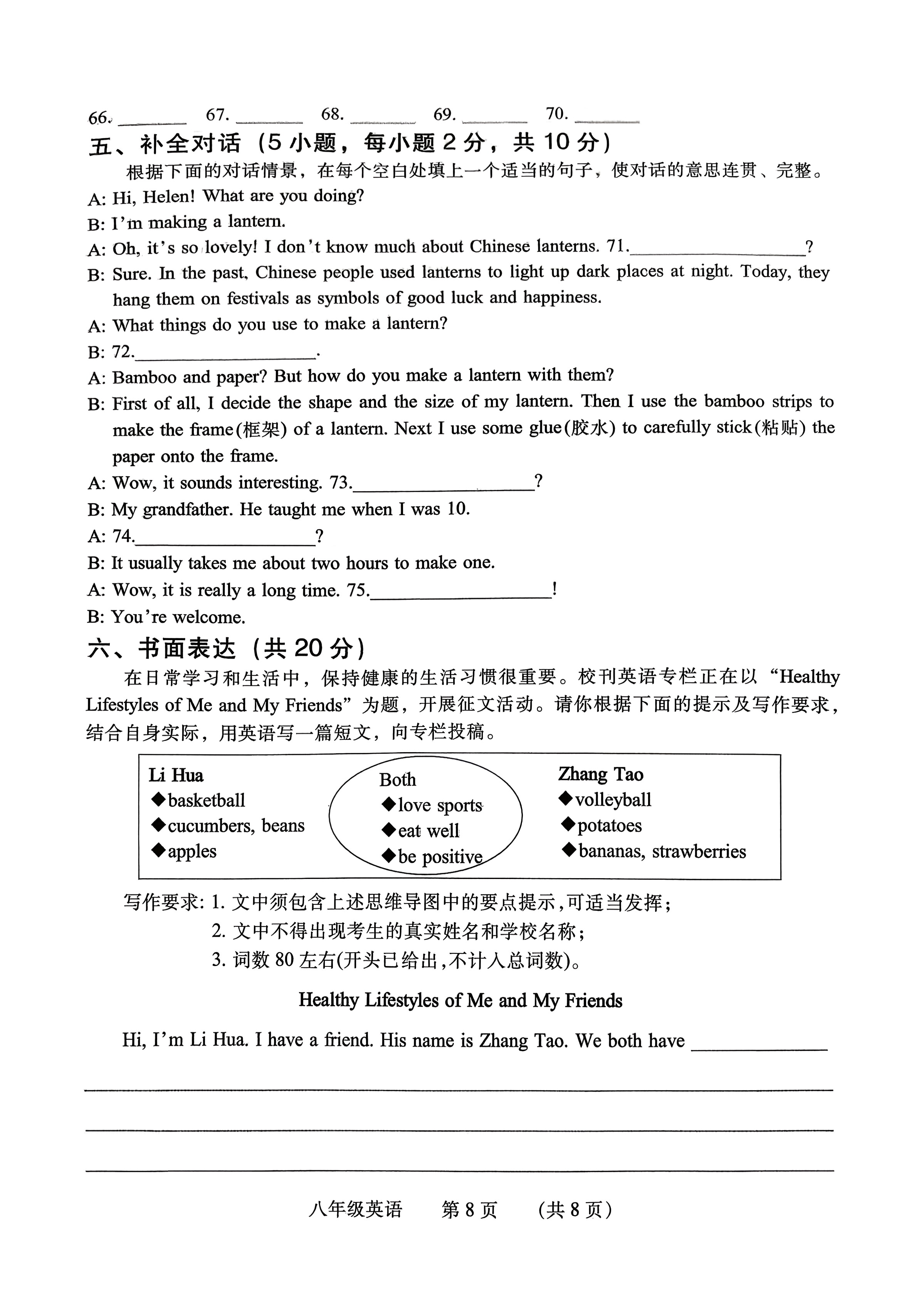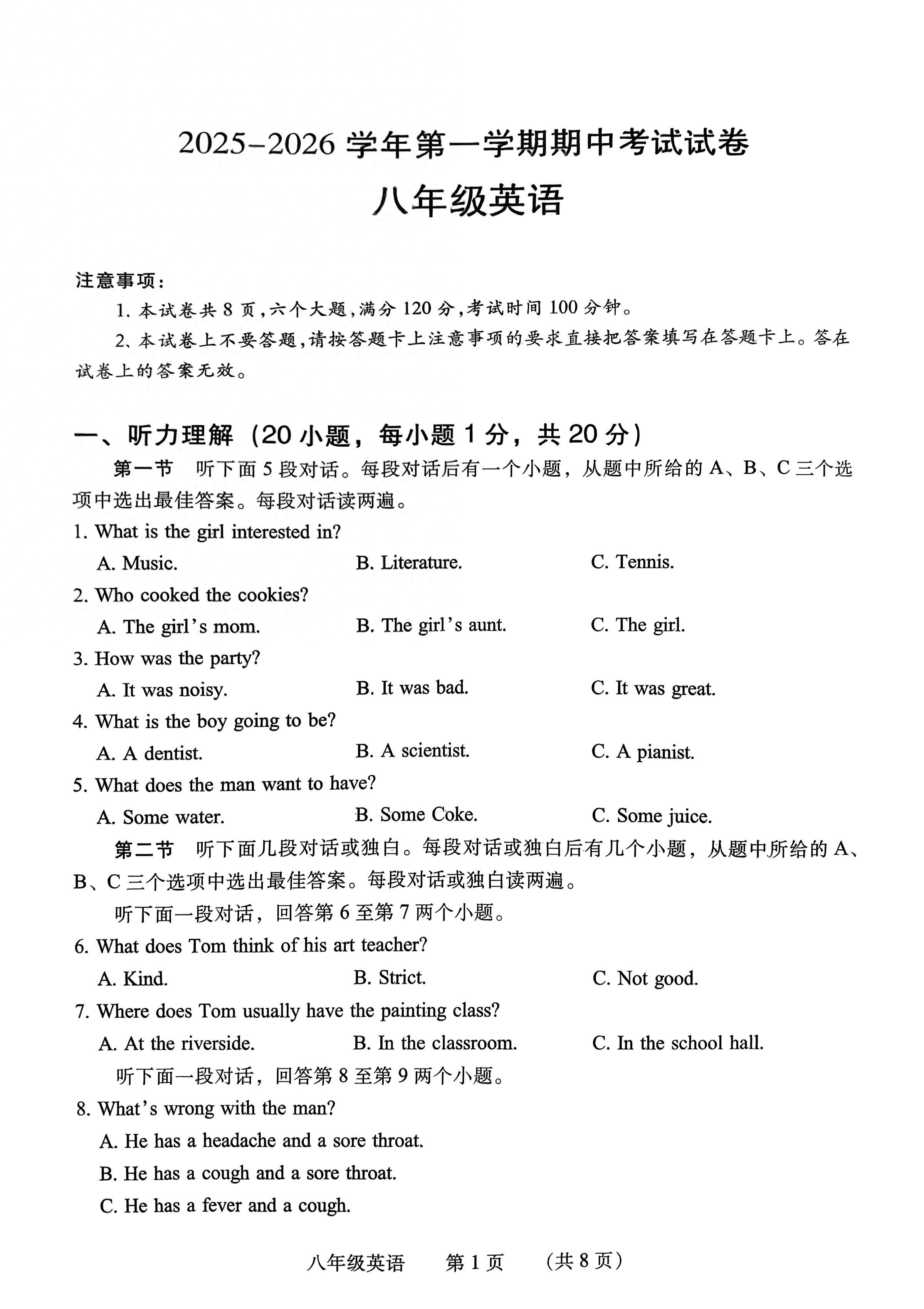 濮阳市2025–2026学年第一学期期中考试试卷八年级英语