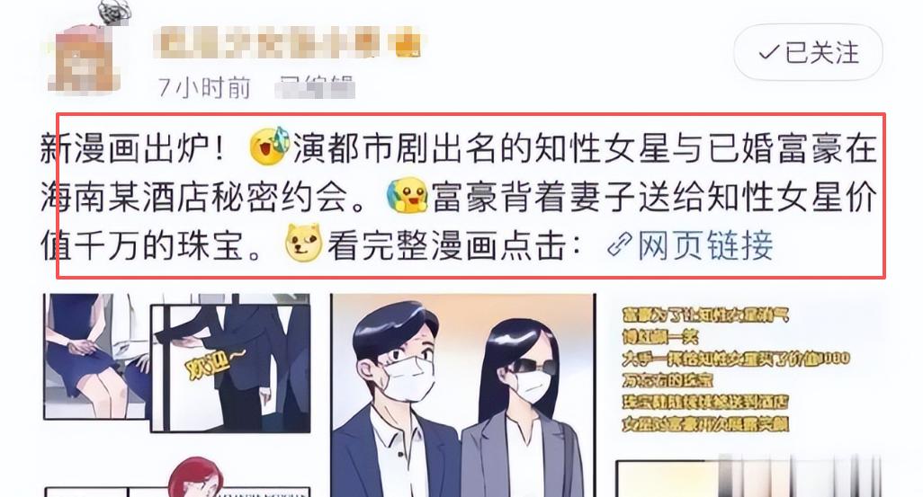 江疏影被造谣跟博纳总裁于冬海外产子,漫画把她画成小三模样,全网都在讨论这事儿。