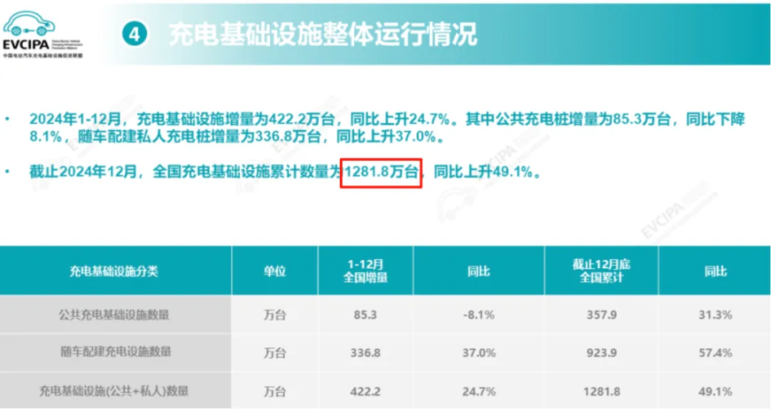 这类“场景焦虑者”往往陷入一种认知偏差:用极端场景下的不便,否定日常场景下的优越性。他们忽略了全国充电基础设施的迅猛发展——截至2024年底,中国充电基础设施累计数量为1281.8万台,同比增长49.1%,高速公路服务区充电设施覆盖率更是达到98%。