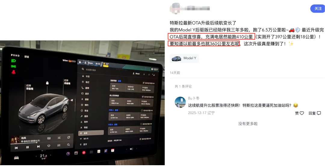 上海的一位Model Y车主分享了他的经历:“去年的一次OTA升级后,我的车续航提升了6%,加速响应更快了。这种感觉就像手机系统升级后焕然一新。”这种“可进化”的属性,是任何燃油车都无法提供的。