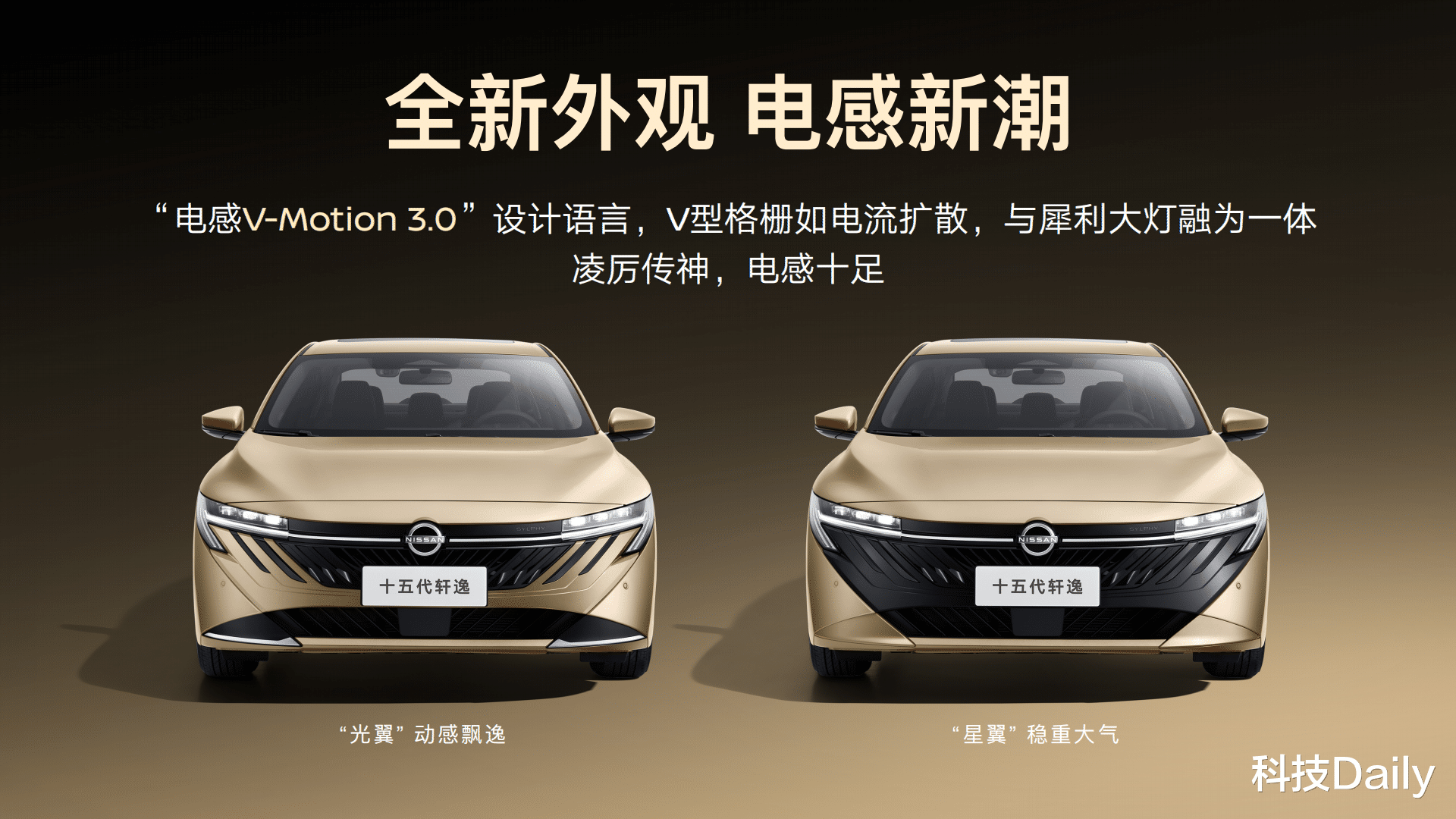 先看经典再进化的「十五代轩逸」,智能舒适全部拿捏,全新电感V-Motion3.0设计语言,好看更有科技感,“光翼”与“星翼”双前脸,满足个性更是稳重,全面满足用车群体,相对的宽体低趴车身搭配极为流畅的线条也带来了满满的科技感,这设计谁看了不心动。