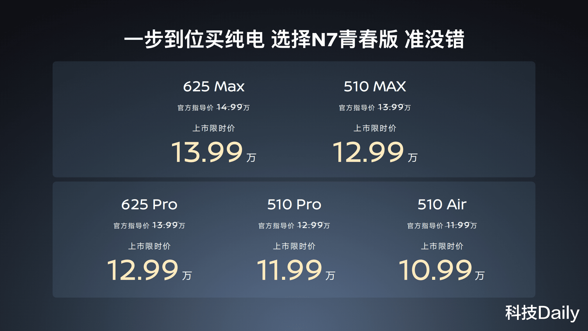 对啦很受大家欢迎的N7也带来了「N7青春版」,让好车全面普及,设计方面极简至美好看更高级,2915mm的超长轴距,83%高得房率,我在去年国庆就实打实的感受到了这款车的大,而作为青春版,N7青春版也相当可靠,超高强度笼式车身,守护得住安全,更有安全靠谱的电池。