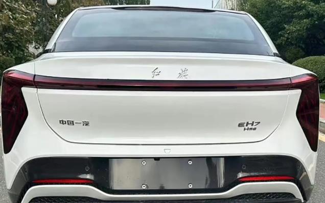 红旗EH7整个车尾部设计也十分简洁。两侧“7字型”尾灯组配合贯穿尾箱的LED灯带,与红旗E-QM5同样有着“异曲同工之处”,先不说科技感、时尚感,就辨识度这块来说,还是非常明显的。此外,下包围处扰流板设计配合尾箱小压尾造型,多少还是有些运动气息在。