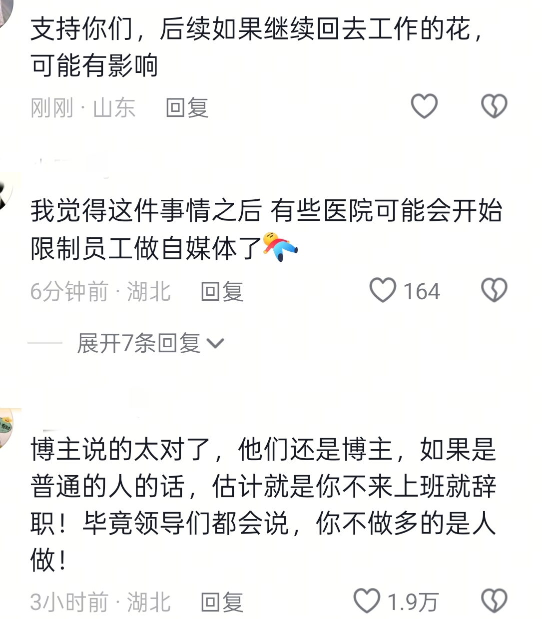 还有的网友担心秋树和医院闹成这样,就算她这次请了病假,可等她回去上班后,会不会被穿小鞋,被孤立呢?