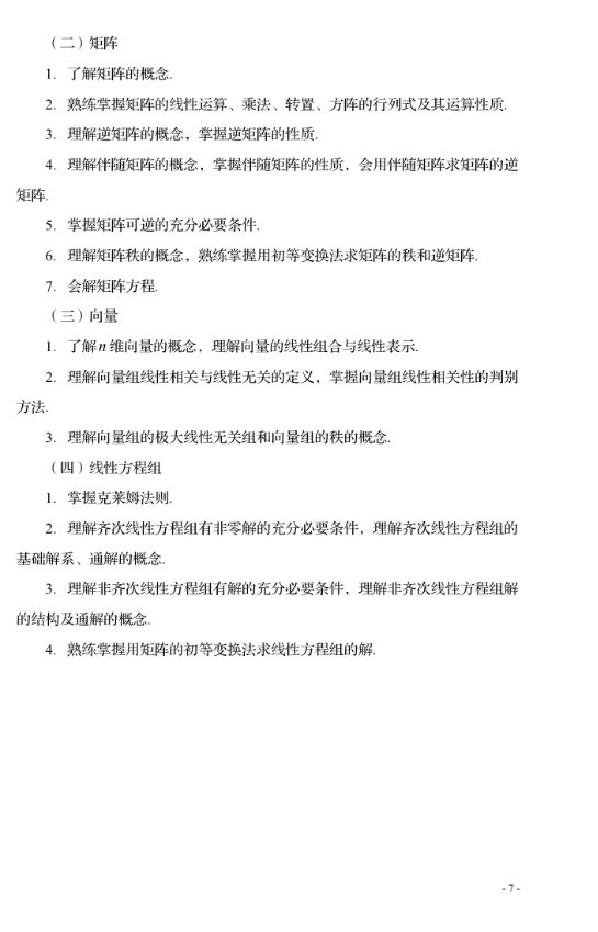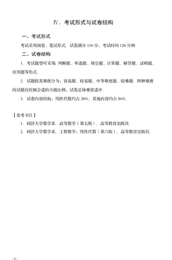 试卷内容及分值结构: 线性代数约占20%,其他内容约占80%。
