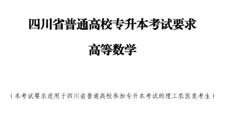 2026 年四川省普通高校专升本《高等数学》是面向理工农医类考生的公共基础科目,以数学抽象、数学推理、数学建模、数学技术四大核心素养为导向,依据《高等职业教育专科数学课程标准》及四川省专科数学教学实际命题,突出基础性、综合性、应用性与创新性。以下为四川省普通高校专升本《高等数学》考试要求: