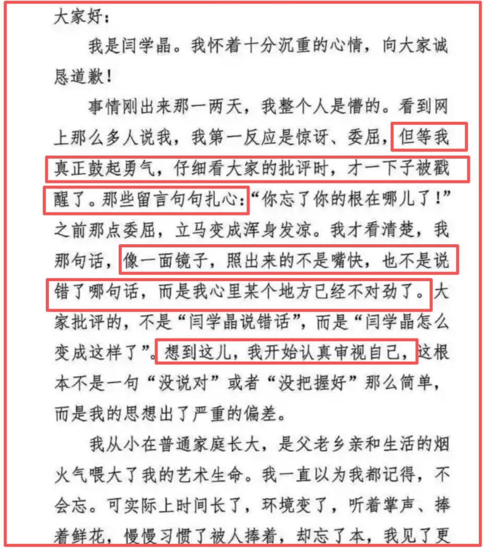 由此可见,闫学晶这一关恐怕很难过了。其实,从闫学晶那看似诚意满满的道歉信中,也不难发现她实际上是“被逼”无奈。