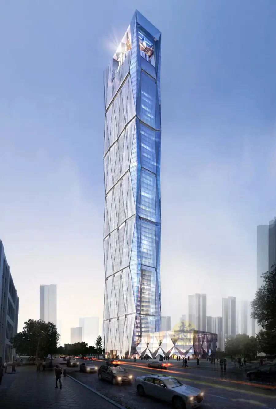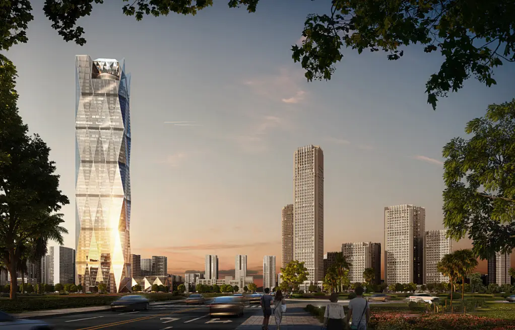 主塔楼以钻石切面为建筑设计主题,设计元素贯穿从塔楼形体到裙房表皮的整个建筑形态,因此被称为“钻石大厦”。