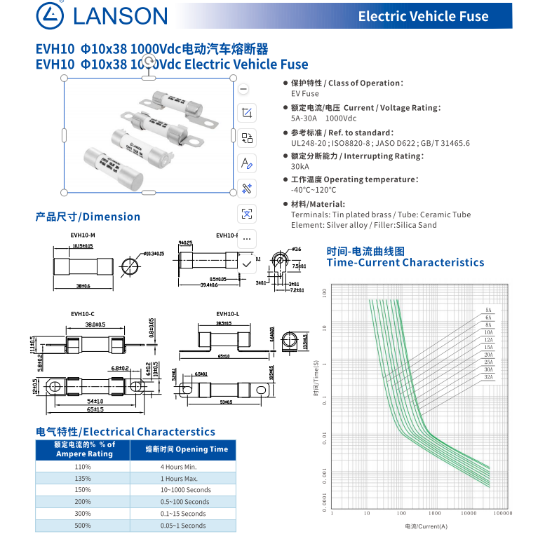 EVH10 1000Vdc电动汽车熔断器 Electric Vehicle Fuse
