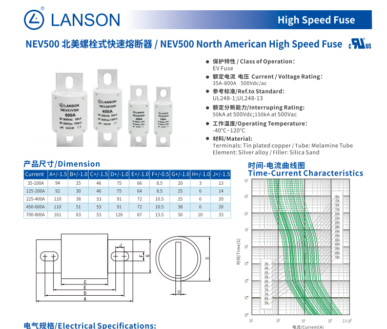NEV500 北美螺栓式快速熔断器North American High Speed Fuse