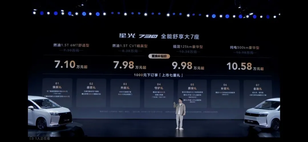 但,星光730的官方指导价仅为7.30-10.98万元,配上置换补贴还能再便宜2000元,价格断层式亲民。