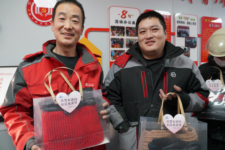 “我们骑车的时候,把围巾系上、手套带上,脖子和手就不冷了。”外卖骑手赵永永轻轻抚摸着手中的红色围巾,眼圈微微发红。他说,这份礼物让他想起了家的温暖,给他带来了冬天里的关怀。