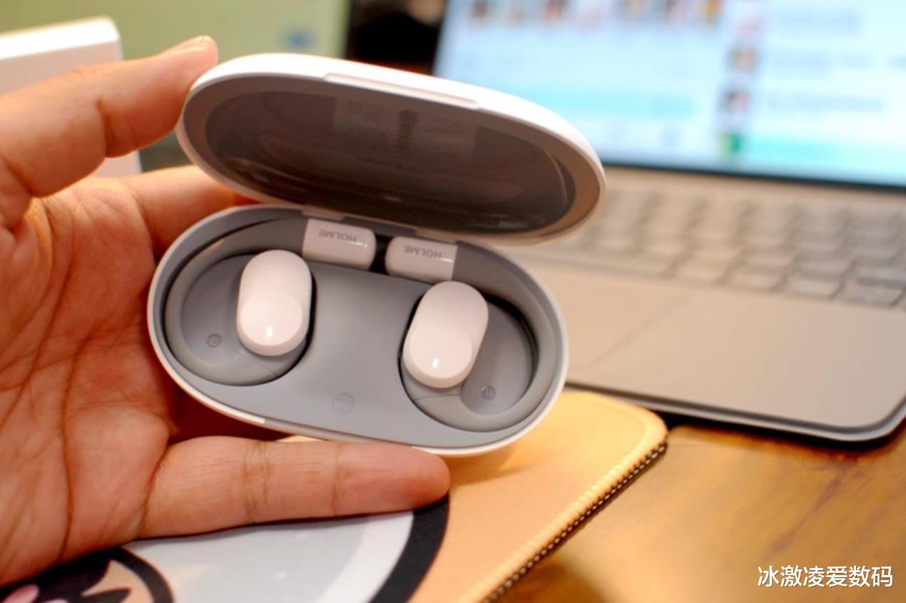 电量也够用,单只耳机能听 8 小时,加上充电盒能用到 32 小时;耳机还搭载了虹觅自研的触片式充电,不仅加快了充电效率,也不容易接触不良。