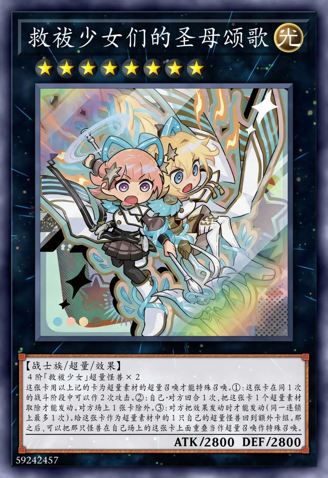 这张卡用以上记的卡为超量素材的超量召唤才可以特殊召唤。①:这张卡在同1次的战斗阶段中可以作2次攻击。②:我方•对手回合1次,将这张卡1个超量素材取除才可以发动。对手场上1张卡除外。③:对手将效果发动时才可以发动(同一连锁上最多1次)。给这张卡作为超量素材中的1只我方的超量怪兽回到额外卡组。那之后,可以将那只怪兽在我方场上的这张卡上面重叠当作超量召唤作特殊召唤。