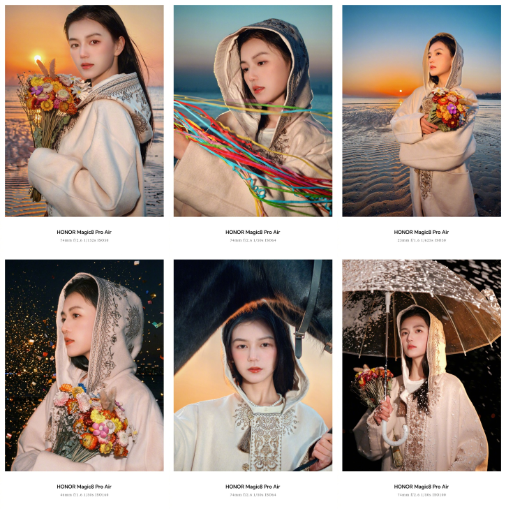 此外,@荣耀手机 和荣耀首席影像工程师 @罗巍Cyberverse 还陆续晒出了多组Magic8 Pro Air的人像拍摄样张。据官宣称,“从暮色到星夜,#荣耀Magic8 Pro Air#轻松捕捉每个动人瞬间!全焦段Ultra级闪光效果,让人物轮廓更清晰,面部肤色更自然,背景更有层次感,照片超有氛围感。每一次按下快门,不论道具、场景、光线如何变化,都能拍出属于你的主角感。”