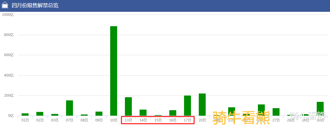 4月13日(周一)、4月17日(周五)是下周解禁的高峰期,并且有部分个股解禁比例已经超过了60%,特别是4月13日(周一)的哈铁科技。一定要注意这些个股不要“踩雷”。