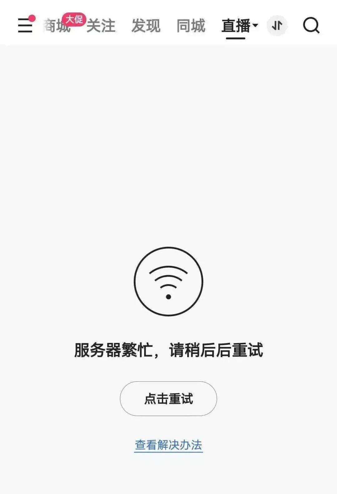 面对这一极端情况,快手采取了果断措施,紧急切断了整个直播功能。页面显示“没有找到内容”或“服务器繁忙”,除直播功能停摆外,部分用户也察觉快手短视频浏览等功能也出现了短暂波动。