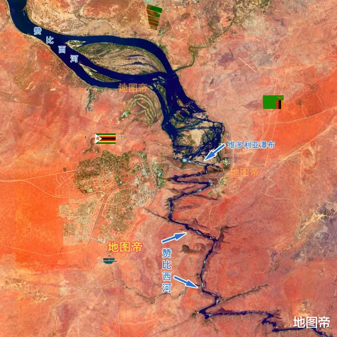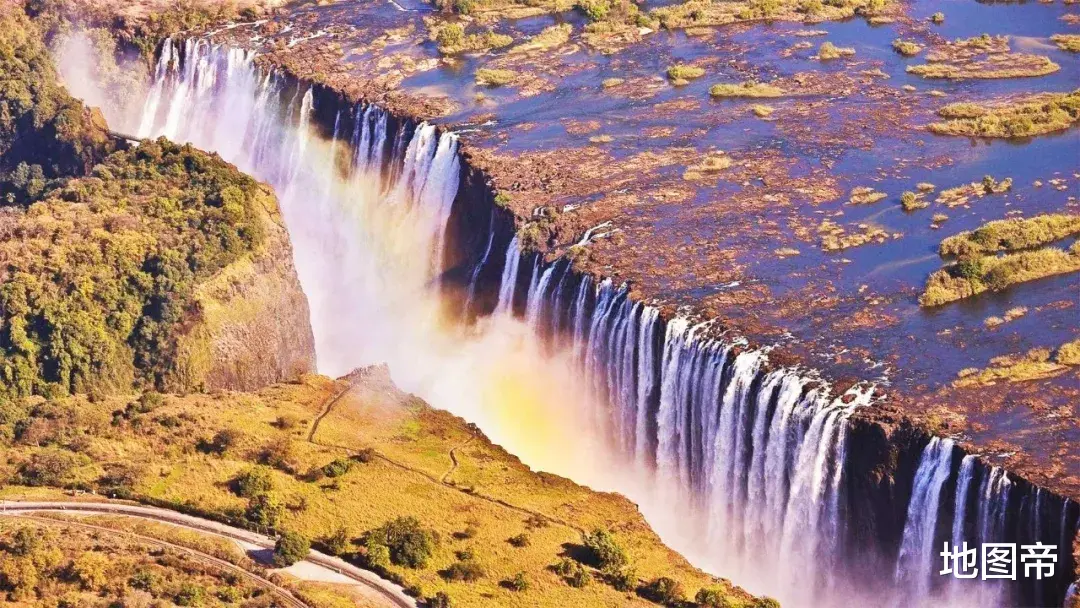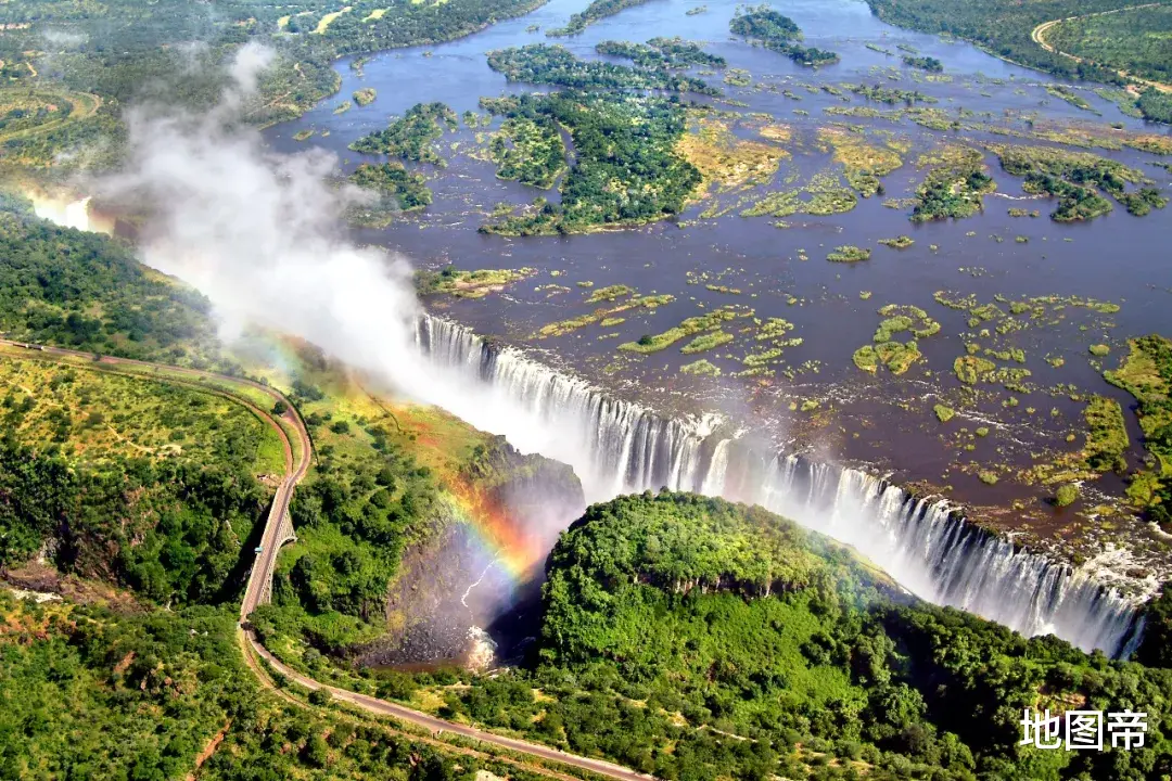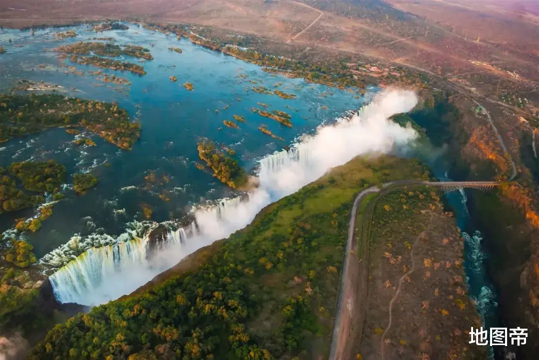 维多利亚瀑布,地处赞比西河上游与中游的结合部,北属赞比亚,南属津巴布韦,相似的还有北美洲尼亚加拉瀑布分属美国和加拿大,南美洲伊瓜苏瀑布分属巴西和阿根廷。