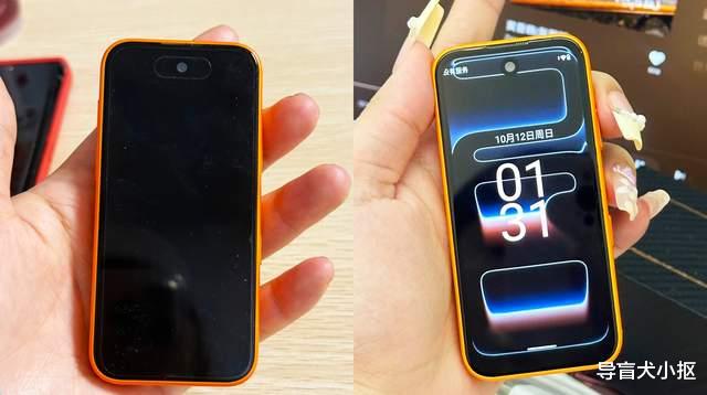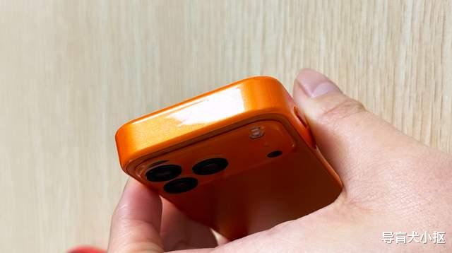 外观上,s17Promini看着就是缩小版的水果手机。从设计上对比,二者非常接近,s17Promini本身也源自于华强北市场,所以你说像水果手机那太正常了。缩小比例下,s17Promini也有一样的精致做工,比如说主打的橙色布局,直角边样式中框,屏幕做得足够小,意味着机身纤薄。s17Promini仅有12.1mm厚度与101克重量,偏厚但非常轻,内部元器件没有缩水。单手握持下,s17Promini手感好,加上保护壳与挂手绳,像功能机的手感。