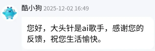 最关键的是,据某酷后续甩出的实锤,“大头针 Offical”,是由某酷音乐打造,并由阿波罗声音实验室提供AI技术支持的歌手。反正,酷子这,他包AI来的。