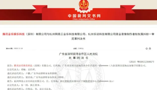 图为:腾讯音乐和网易云音乐就周杰伦歌曲版权打官司