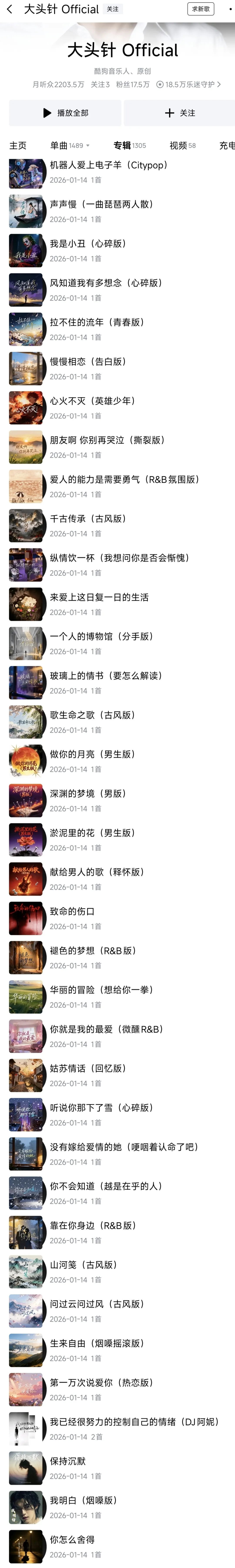 二是,你看这一天37首的发歌量,比生产队的驴还能肝。如果是真人,就算是嗓子唱劈叉了,也唱不出这老长老长老长的一串,比日更的船长还要高产。