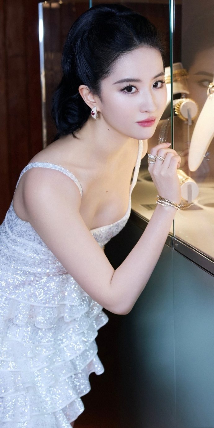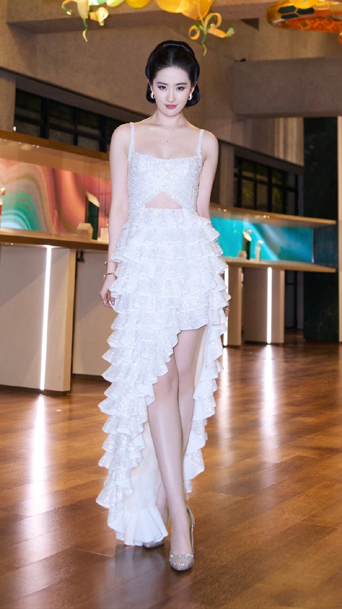 刘亦菲穿着白色吊带裙写真,美妙的玉腿,优雅大气的茜茜公主