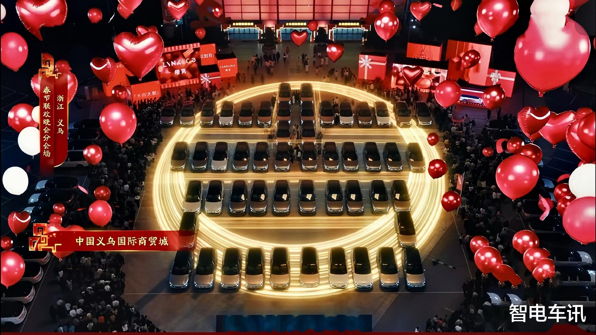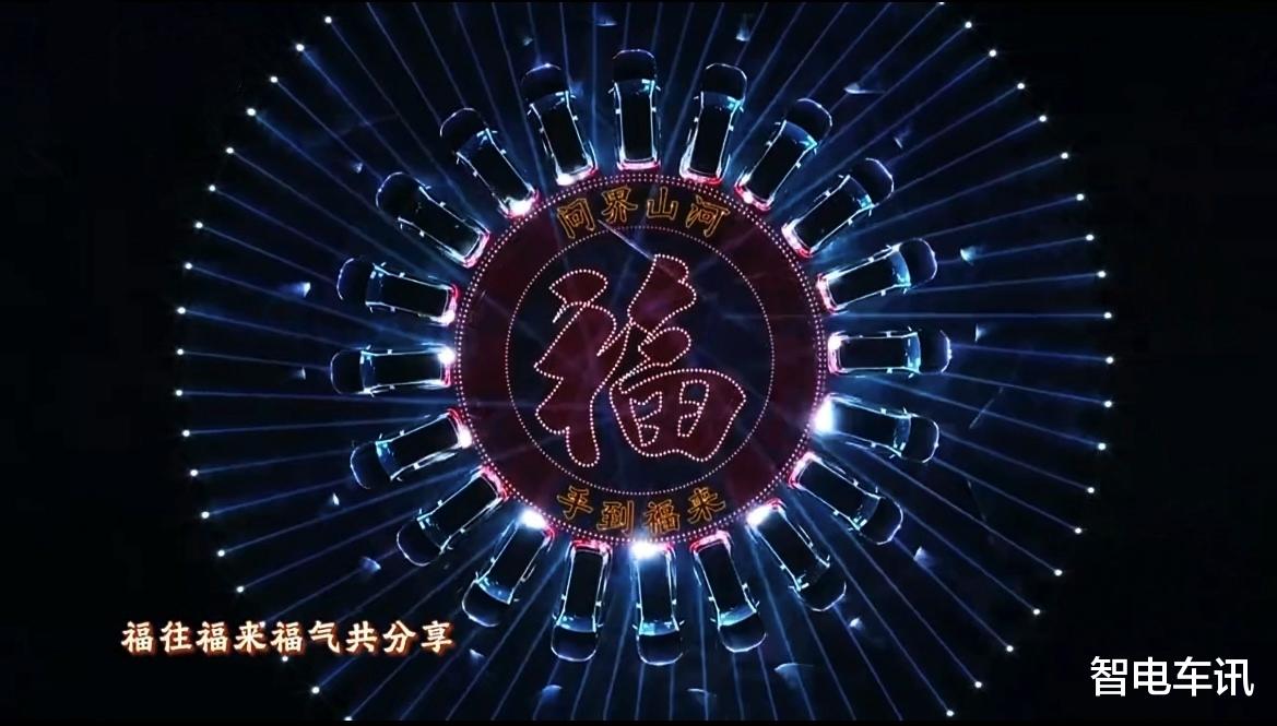 颇为吸睛的当属连续第三年亮相的问界M9,现场通过百万像素智慧大灯组成云控灯光矩阵,在地上投射出“福”字与“问界山河”。无独有偶,义乌分会场的百余辆领克900也组成“吉”字灯阵,上演“赛博灯会”。