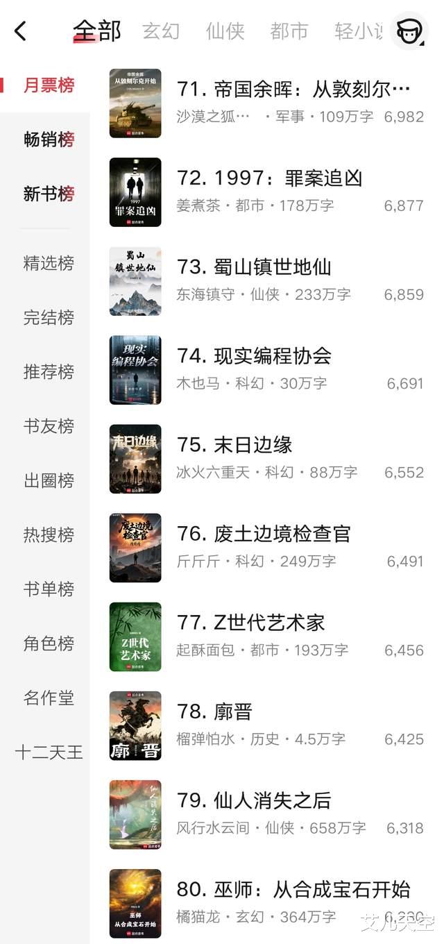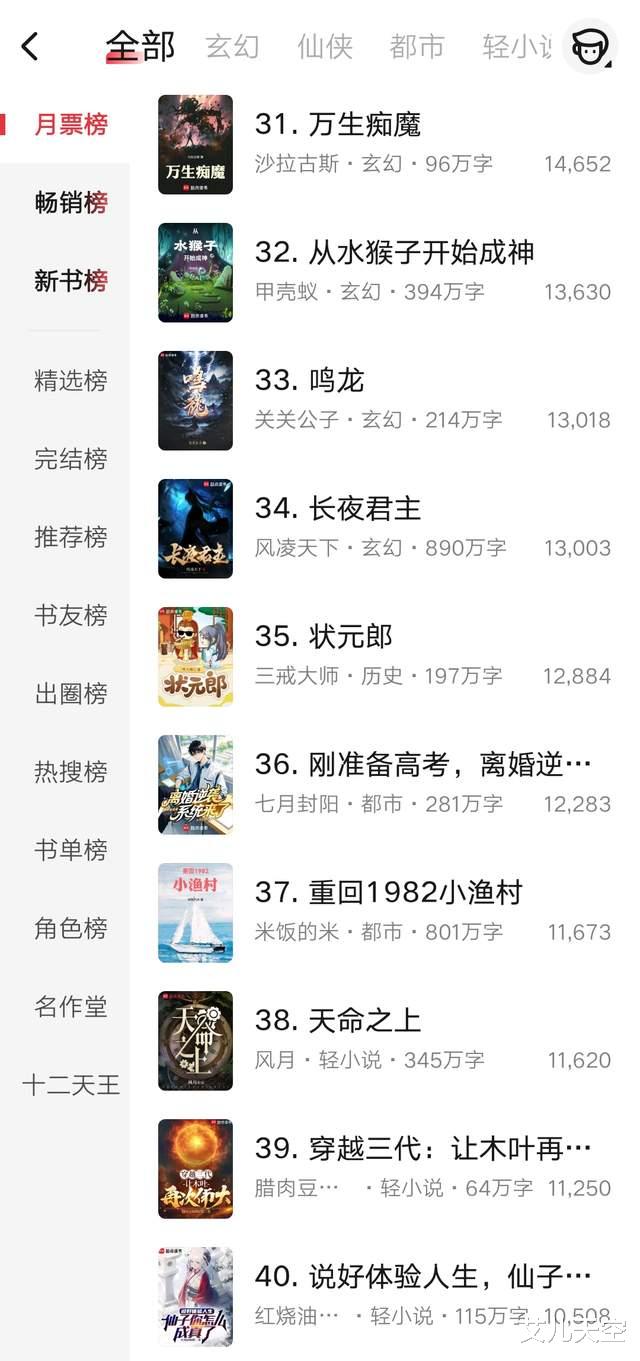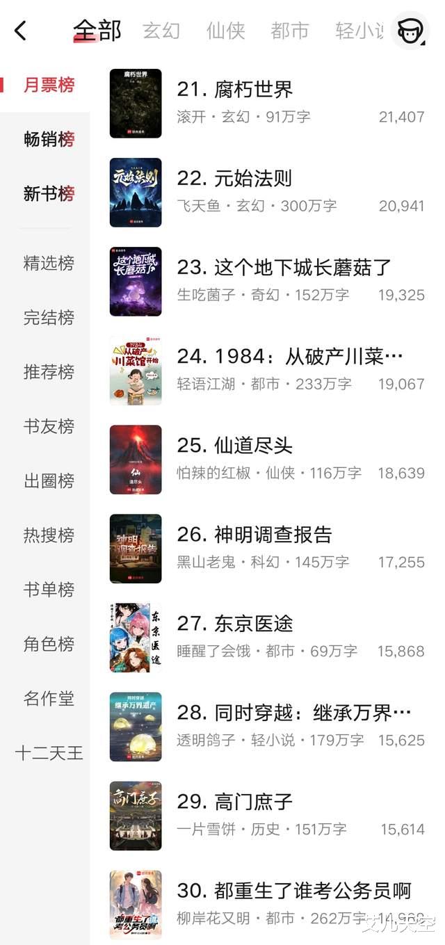 完结老书《诡秘之主》这周重回前二十了,就是不知道月末能不能维持住。