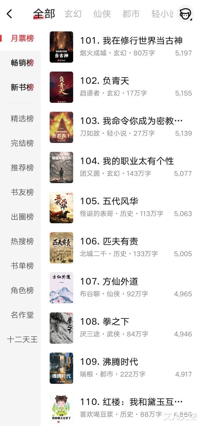 以上就是二月第三周起点一些作品的月票榜排名情况了,简单记录一下,那么本期就到这里,我们下期再见。