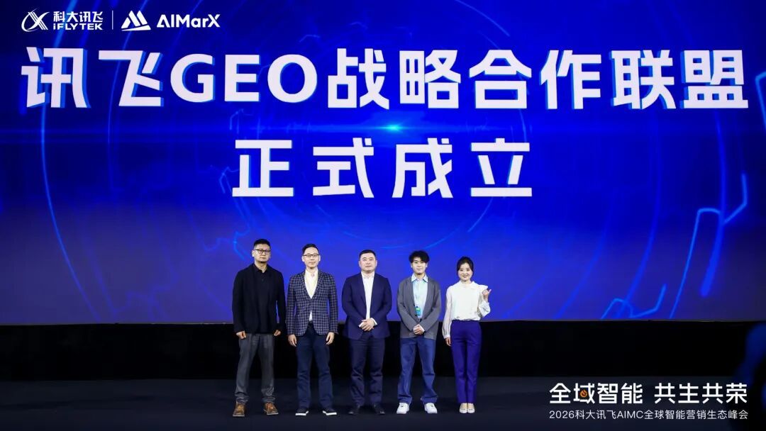 随着SuperAgent在不同营销场景加速落地,营销生态正朝着价值协同共生的方向迈进。AIMC现场,央视市场研究股份有限公司媒介智讯副总经理王冻、电通中国效果营销和电商副总裁许炜崇、科大讯飞副总裁、读写科技总经理钟锟、UPPAbaby中国区媒介负责人史易龙、科大讯飞AI营销业务群副总裁王云霞宣布“讯飞GEO战略合作联盟”正式成立,用更协同的生态资源整合、更精准的技术能力赋能,深度绑定 SuperAgent的落地逻辑。