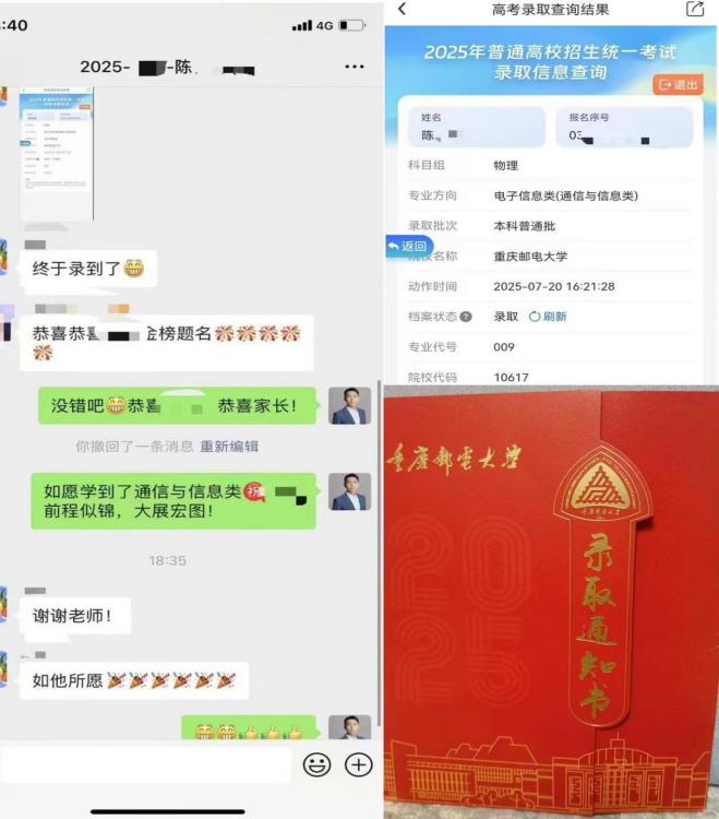 郑老师发现C同学在杭州电子科技大学(103组)的电子信息类、计算机类专业录取希望较小,反而很可能被组内的边缘专业录取,于是老师极力反对同学和家长想把杭电放在前面的想法。果然,在最终杭州电子科技大学2025年录取的投档线也显示:C同学的分数只比投档线高出3分而已。如果当时把杭州电子科技大学放在重庆邮电大学的前面,几乎100%会被组内的统计学、车辆工程、工业工程这三个专业录取。最终C同学成功被重庆邮电大学的王牌专业“电子信息类(通信与信息类)”第一专业录取。
