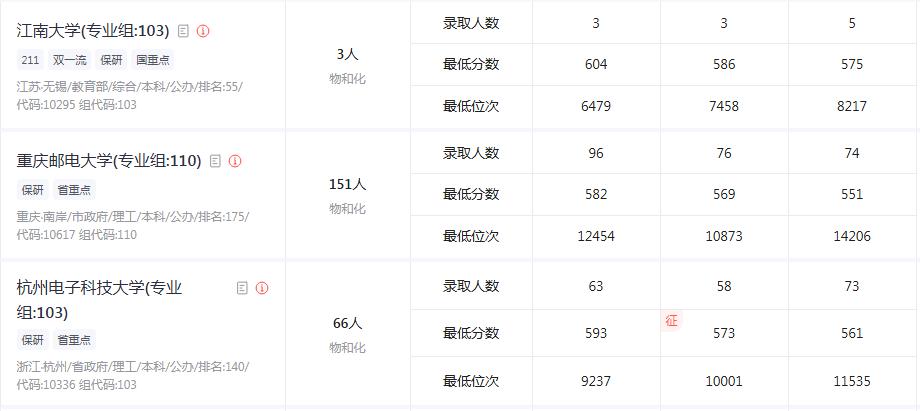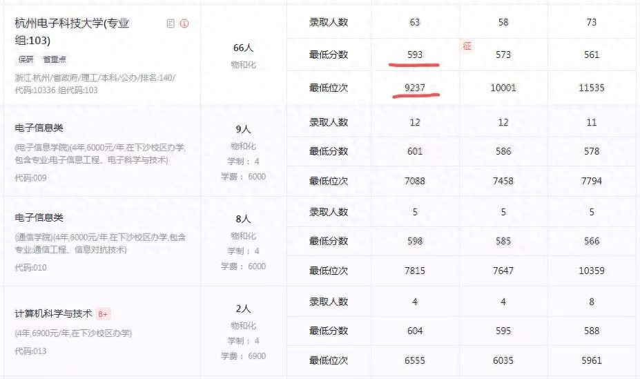 其次,在广西以电子信息类专业为主、且组内专业较为纯粹的专业组,分数呈现连年上涨的情况,因此保专业的方案要偏保守一些。