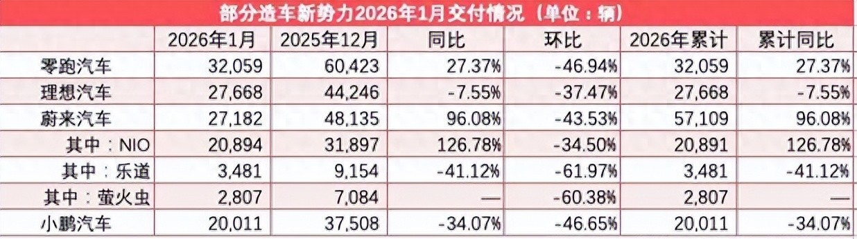 2月1日,造车新势力零跑、理想、蔚来和小鹏先后发布1月交付量。其中,二家车企实现同比增长,但相较于去年12月,交付表现出现明显下滑。