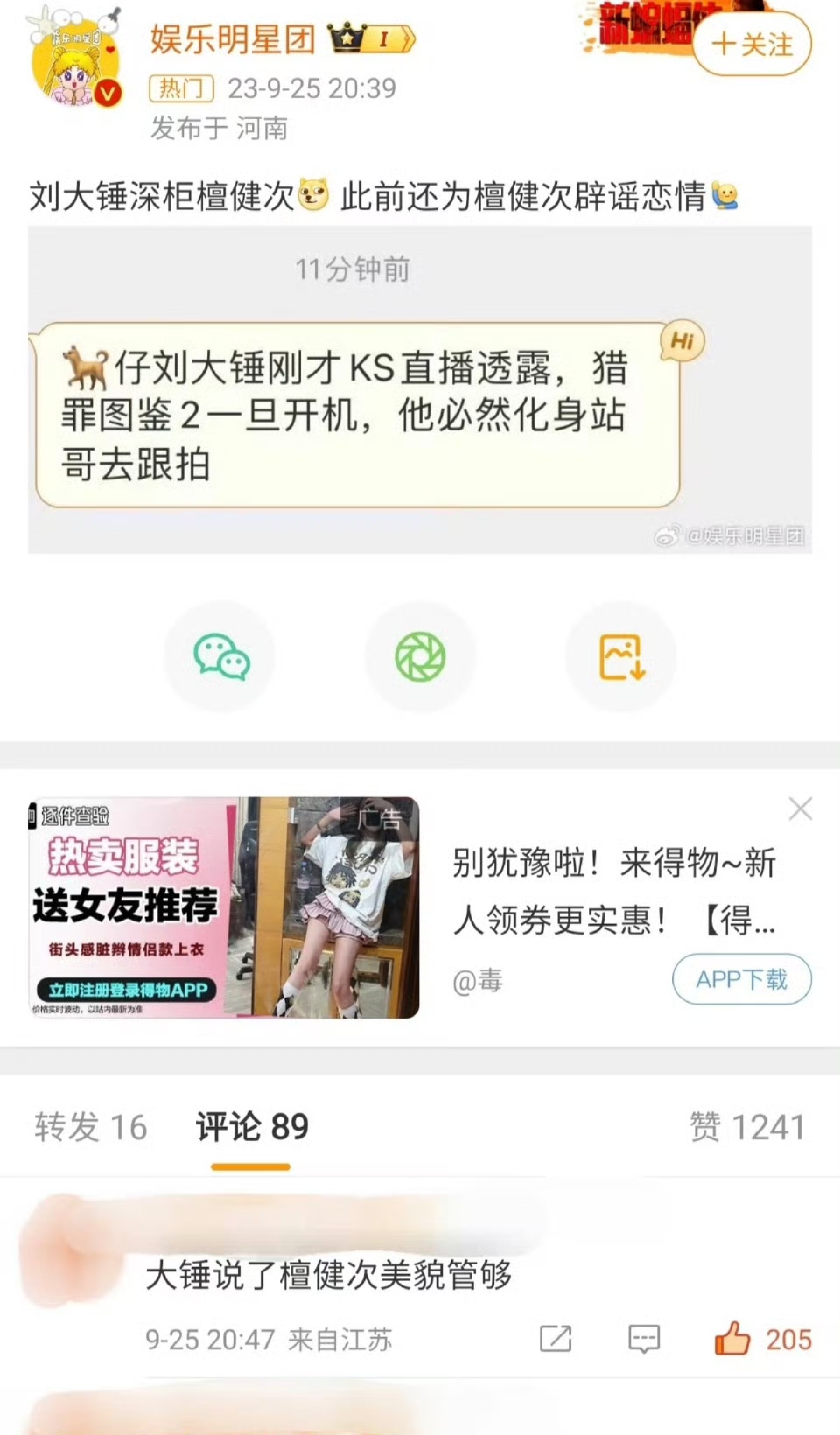 檀健次的黑料都是同一个主持人发布,叫“浪花文艺”。”
