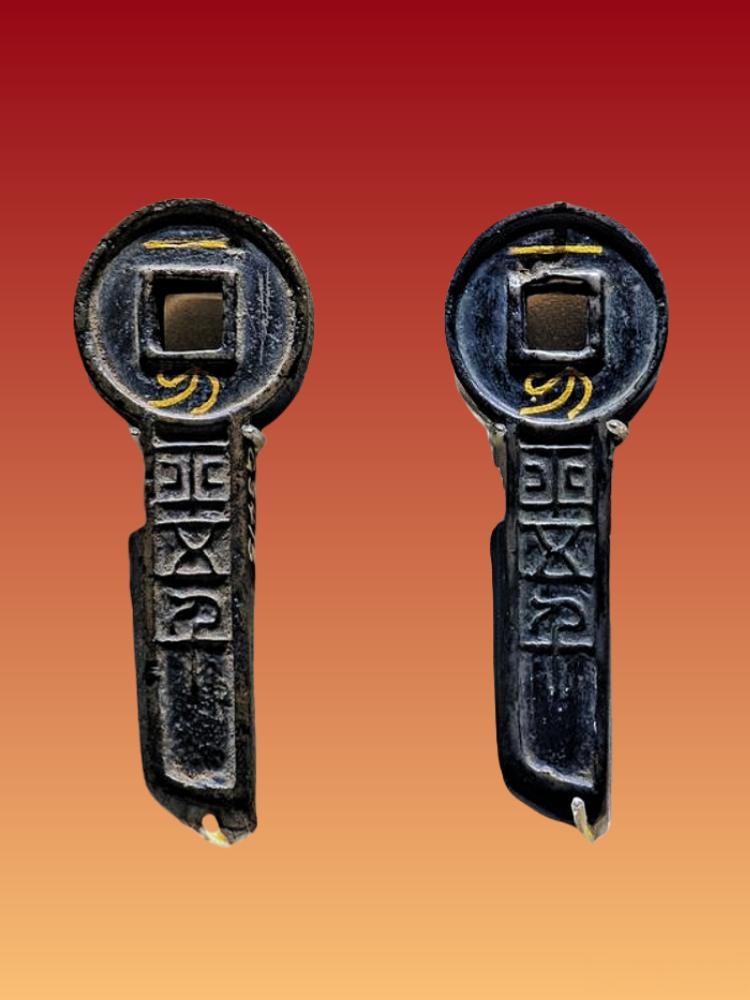 嘉靖通宝背十一两是明代世宗嘉靖年间(公元 1522-1566 年)铸造的大额钱币,“嘉靖” 为世宗年号,“背十一两” 表示背面标注 “十一两” 重量,“十一两” 并非实际重量,而是虚值纪重,是明代中后期虚值钱的典型代表,多见于云贵地区,上海博物馆馆藏的这枚为珍品。