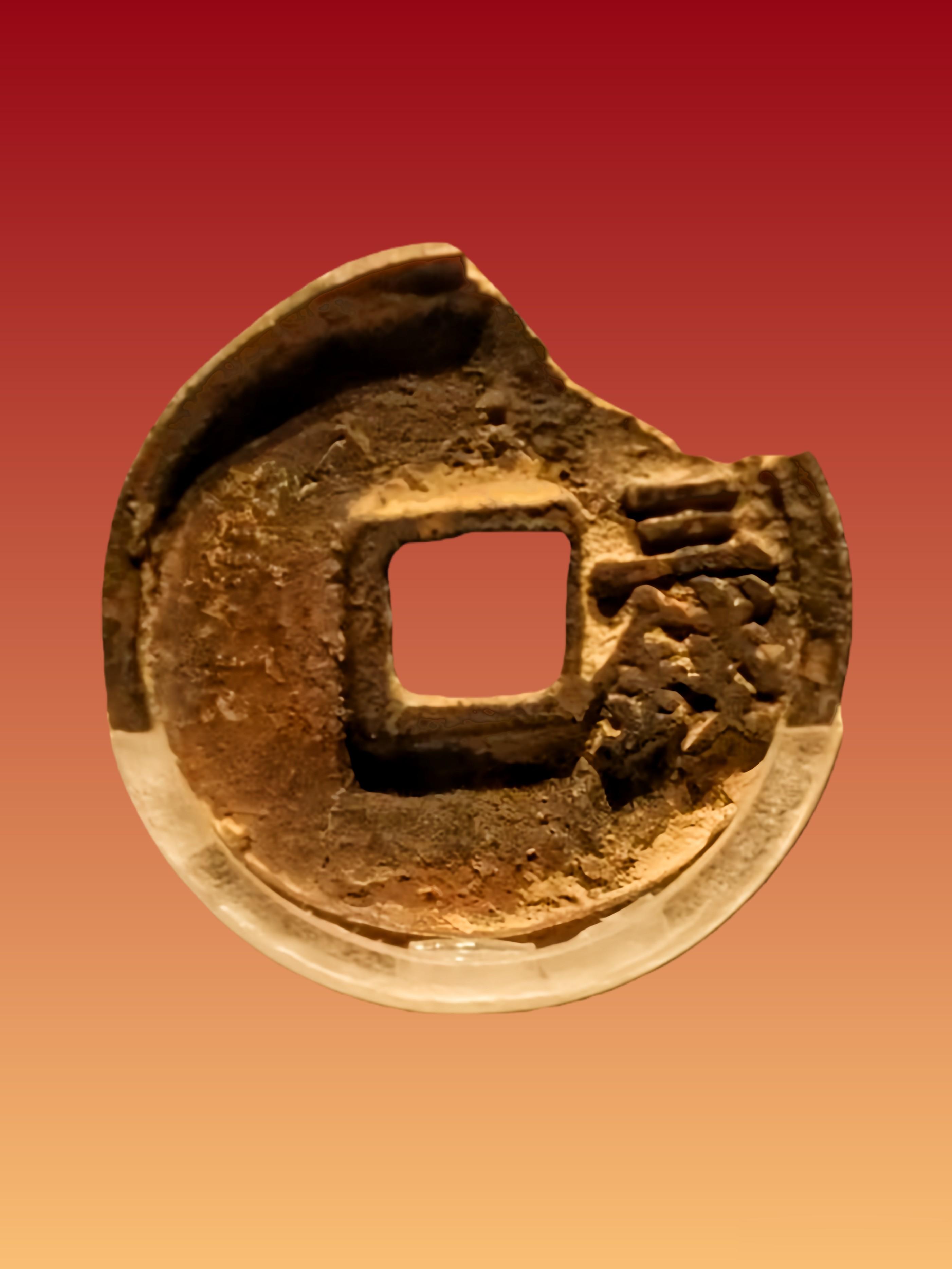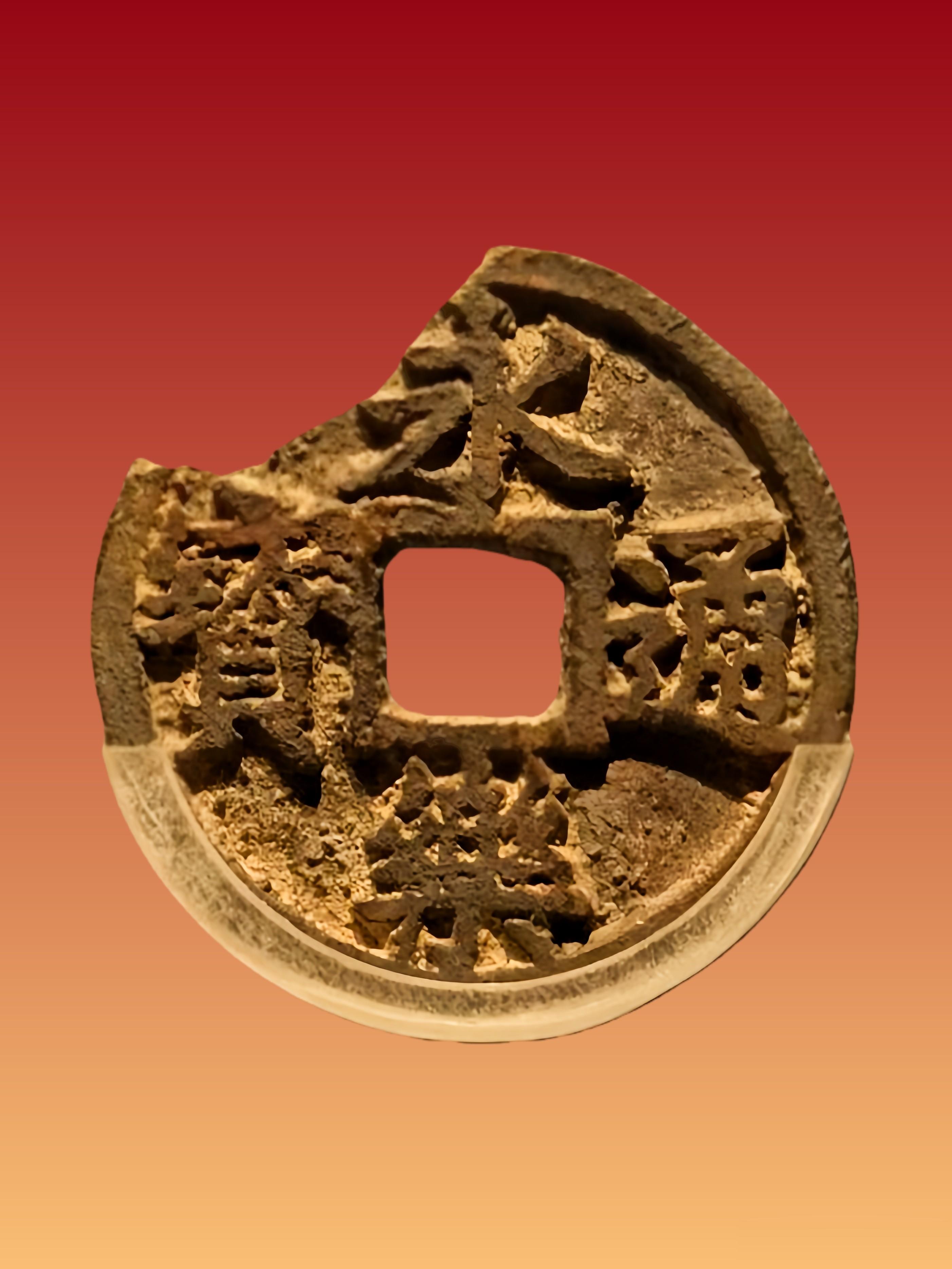 18、大中通宝背桂三大中通宝背桂三是明代太祖朱元璋称帝前(公元 1361-1367 年)铸造的货币,“大中” 为朱元璋所定年号,“背桂” 表示铸造于广西地区,“三” 表示折三型,即一枚可当三枚小平钱流通,是明代早期货币的重要品种,上海博物馆馆藏的这枚为著名收藏家李荫轩旧藏。