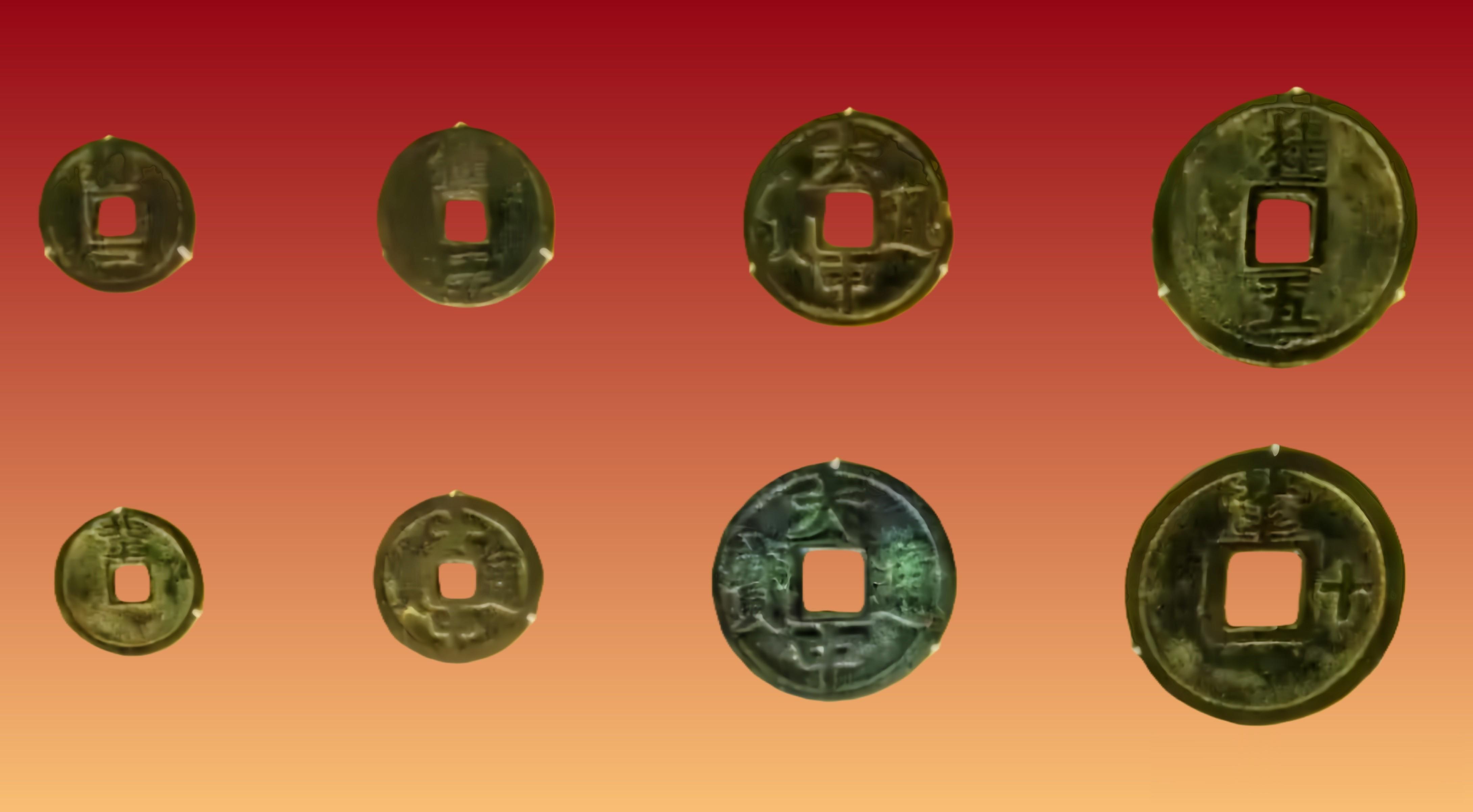 10、 乾封泉宝(鎏金)乾封泉宝(鎏金)是唐代高宗乾封元年(公元 666 年)铸造的年号钱,也是唐代唯一一枚以 “宝” 为名的年号钱,鎏金工艺的运用使其成为唐代钱币中的珍品。“乾封” 为高宗年号,“泉宝” 是钱币名称,这枚钱币的铸造标志着唐代货币制度从 “通宝” 向 “泉宝” 的短暂过渡。