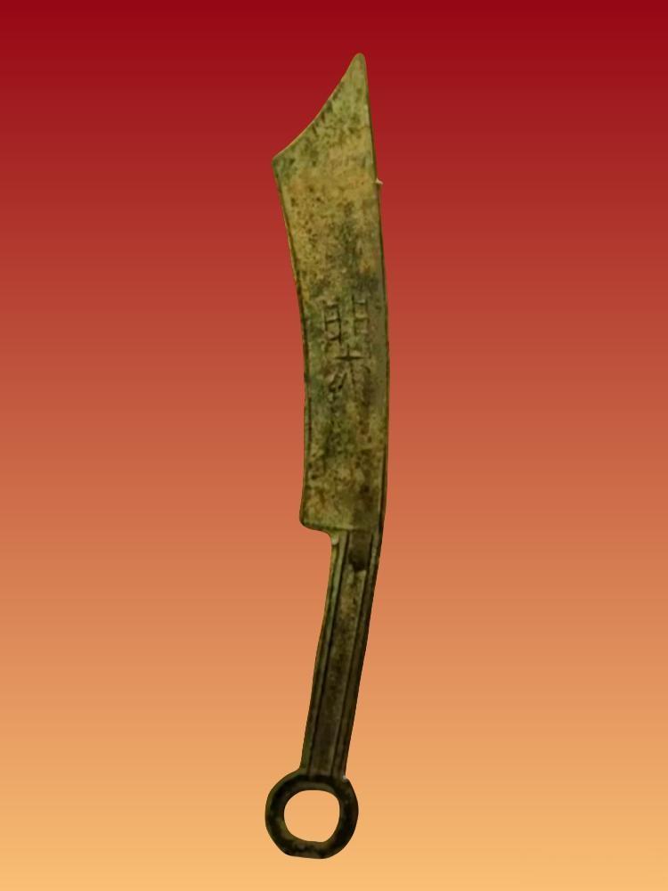 “蔺” 字尖首刀是战国时期赵国铸造的刀币,因钱文 “蔺” 字而得名,是上海博物馆馆藏刀币中的精品。尖首刀是北方游牧民族与中原农耕文明交融的货币形式,兼具实用性与地域性特征,“蔺” 为赵国重要城邑,今山西吕梁一带,是当时北方重要的商业枢纽。