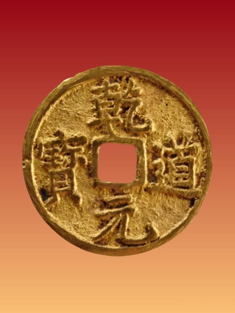 15、乾道元宝(金)乾道元宝(金)是南宋孝宗乾道年间(公元 1165-1173 年)铸造的黄金货币,“乾道” 为孝宗年号,元宝是南宋货币的常见名称,这枚金币是南宋黄金货币的罕见实物,也是上海博物馆馆藏宋代货币中的珍品。