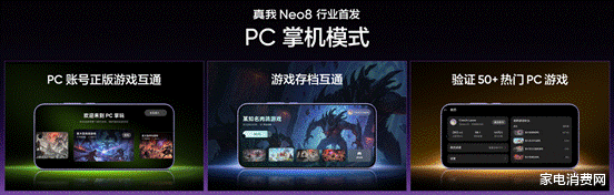 真我Neo8更带来行业首发PC掌机模式,让手机不再只是手机,更是随身携带的PC游戏掌机。PC掌机模式实现Steam账号正版游戏互通与游戏存档互通,已验证可流畅运行超50款热门PC游戏,打破了移动游戏与PC游戏的次元壁。