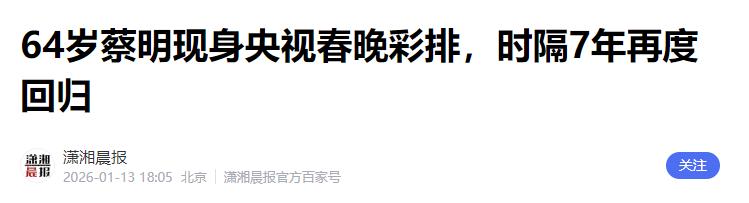 潇湘晨报《64岁蔡明现身央视春晚彩排,时隔7年再度回归》