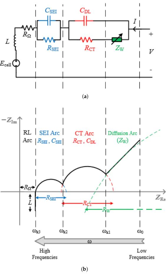 图10(a)自适应Randles等效电路模型(AR-ECM)(b)对应的阻抗谱。DOI:10.3390/en15239251