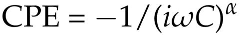 其中a被称为CP指数,其值在1.0(对于纯电容器)和0.5(对于多孔电极)之间变化。实际上,在电容区域中,裸露的、抛光的玻碳电极(GCE)通常具有介于0.85和0.90之间的CPE指数。